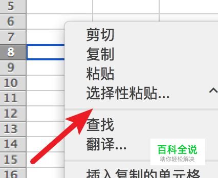 在需要放置的单元格上,右键点击,然后点击菜单上的‘选择性粘贴’。