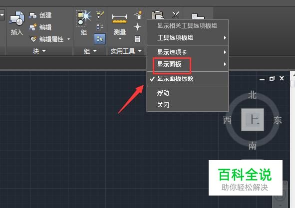在CAD的菜单里我们单击鼠标右键在弹出的右键菜单那里找到显示面板选项,如图所示: