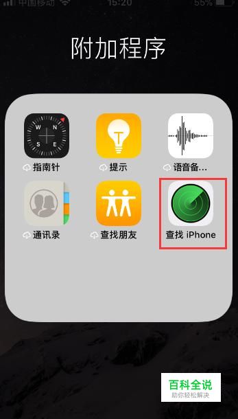 当我们的ipad不小心丢失后,此时我们可以通过iphone手机进行找回。首先在iphone手机中找到【查找iphone】。