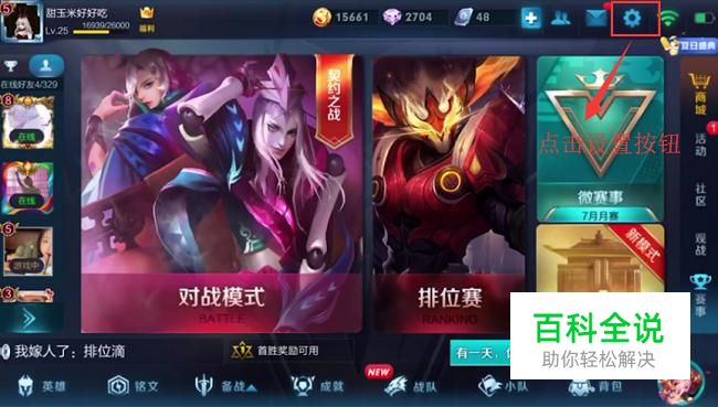 首先登录进王者荣耀,然后点击右上角的设置按钮,如下图所示