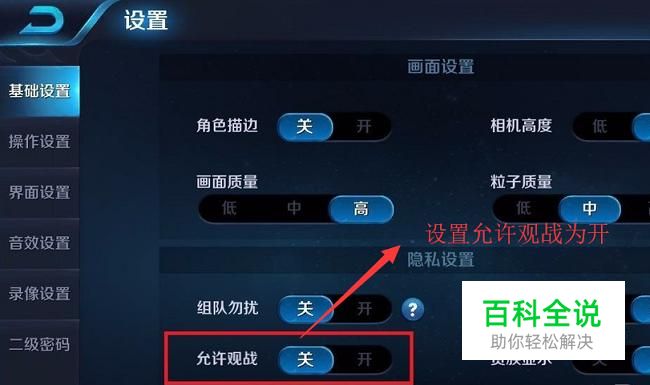 接下来在设置界面中我们将允许观战的开关打开,如下图所示