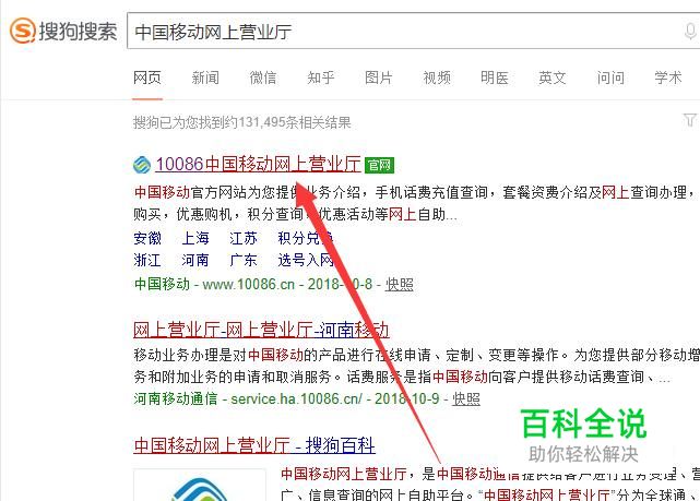 进入之后,搜索“中国移动网上营业厅”,点击并进入,如图所示。