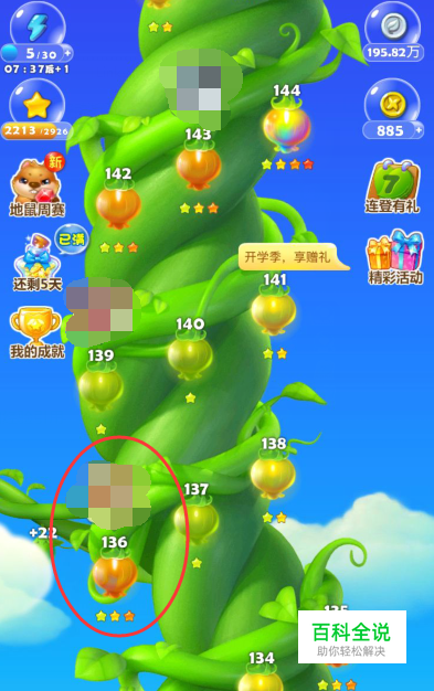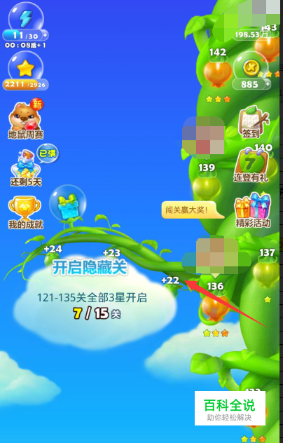 点击第136关卡左边的枝条,就会出现隐藏关卡,但是需要我们将第121关卡到135关卡都3星通关。