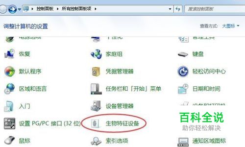 首先需要在笔记本电脑中设置指纹识别。 在控制面板中找到“生物特征设备中”。