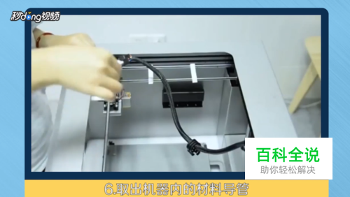 将材料导管穿到缠线管的八字环上,将材料导管安装在机器背部的送料器上,将另一端安装到喷头上。