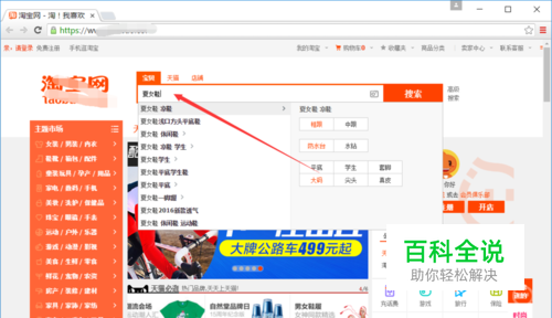 打开淘宝网站后,我们在淘宝搜索框里搜索我们想要购买的宝贝,如下图所示。