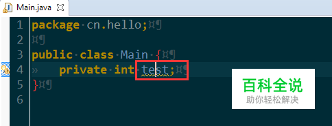 假定为成员变量test生成Get/Set函数。 光标定位到该成员变量,如图: