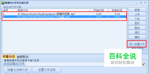 在程序主界面中,通过点击“导入批量文件”按钮将需要进行合成的歌曲全部导入至文件列表中。