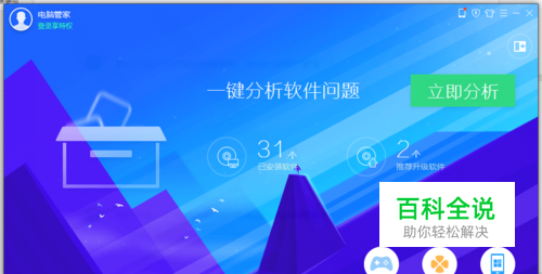 先在电脑里面下载并打开电脑管家,选择软件分析