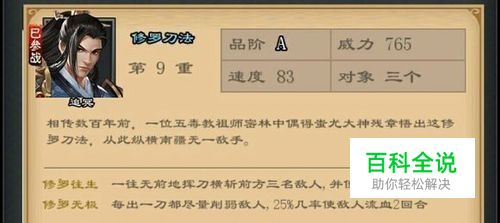 修罗刀法:五毒A级刀法,需要前置--五毒-C-B刀法。 打3,破招架,2段伤害,附带流血效果。虽然后五毒内功威力加成,单实际效果并不理想,可以无视。命中很高,建议全部刀随从学习修罗刀法。 推荐等级:☆☆☆☆☆