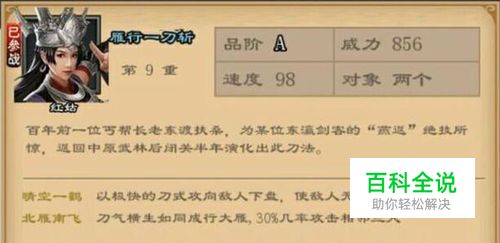 雁行一刀斩:丐帮A级刀法,需要前置--丐帮-C-B刀法。 打2,破闪避,30%打3,速度在免费刀法中算快的,速度不错,刀主可以考虑入手。 推荐等级:☆☆☆☆