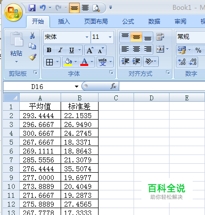 新建表格。将试验结果的平均值与标准差按列复制好。