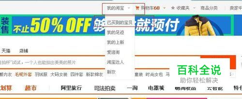 登陆后,在右上角找到“我的淘宝”下拉找到”已买到的宝贝“。