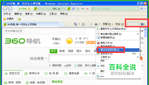 还有一种方法是:开发设置网址兼容性视图,可以在工具里找到。