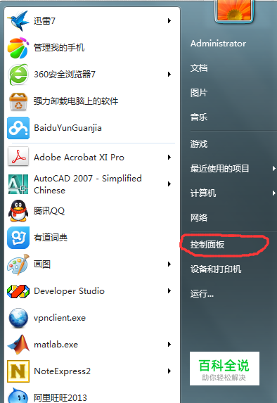 打开电脑的“控制面板”,在电脑左下角点击开始,在菜单里面选在控制面板。
