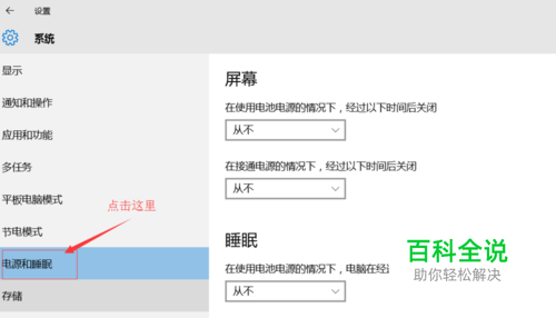 在“系统”中,选择“电源和睡眠”