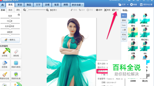 在电脑上面打开美图秀秀,添加需要修改的图片,点击箭头这里查看图片的大小。