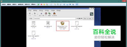 然后在Red Hat Linux系统中弹出的cdrom窗口中 找到VMwaretools-9.6.0-1294478.tar.gz