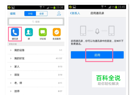 登陆你的QQ账号, 在《联系人》的界面点击《通讯录》,再点击《启用》。