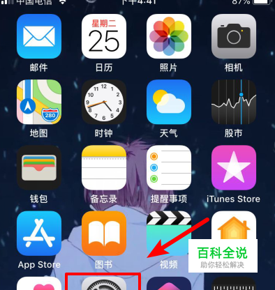 我们解锁进入苹果手机的主界面,找到手机的设置进入。