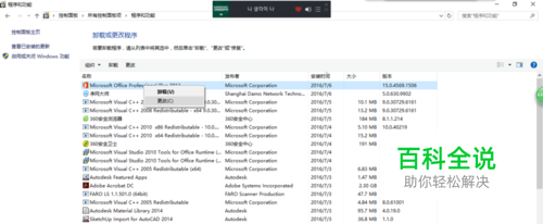 找到电脑软件卸载界面,右键更改