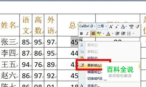 最简单的更新域的方法是右击域代码,从弹出的右击菜单中选择“更新域”项即可。
