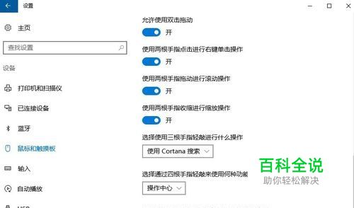 如下图所示,进入方式开始-设置-设备-鼠标和触摸板。触摸板变得不仅更加智能而且更加灵活。智能体现在现在的触摸板可以识别多个手指并实现不同的功能,灵活体现在触摸板可以自定义功能。下面以浏览器的使用为例来体验触摸板强大的功能,因为浏览器用的比较多。