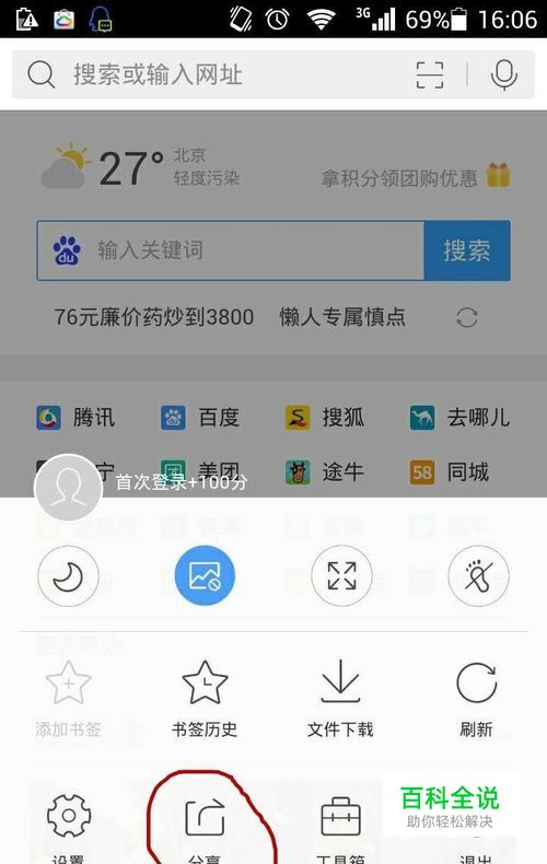 打开qq浏览器,点选下面三横标志,选择分享。