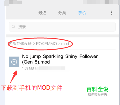 选择需要的mod,下载到手机,一定要记住自己存放mod的文件夹(位置),这里我以 闪光精灵+G5跟随mod 为例