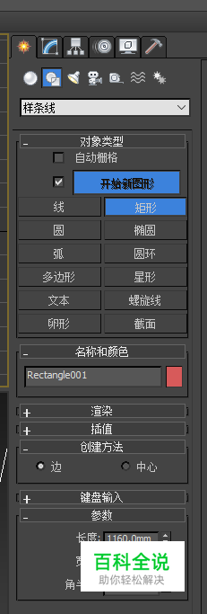 3.选择刚才绘制的矩形并单击鼠标右键,执行(转换为),转换为可编辑样条线命令,然后加载(挤出)修改器,设置(数量)为353mm.如图。