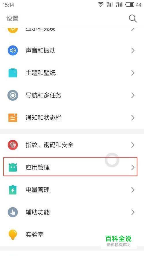 在设置界面中点击打开应用管理选项(红色方框选中区域)