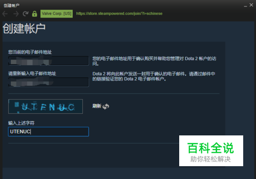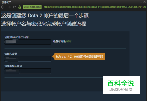 再回到dota创建账号的界面,输入dota2的账户名称,输入密码,点击完成创建按钮