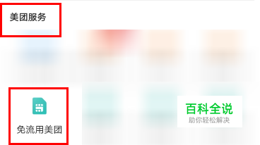 到个人中心之后往下滑动页面,在美团服务中找到免流用美团,如图所示