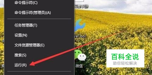 在Windows10桌面,右键点击桌面左下角的开始按钮,在弹出的菜单中选择运行菜单项。