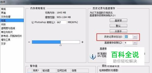 这时,我们只要将“历史记录状态”改的数字大一次,那么撤销的次数也就多了,同时“历史记录”那里显示的就是我们“历史记录状态”这里设置的次数。