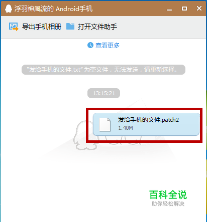这时候,我们拿起手机看手机信息。然后点右上角那个图标就可以找到电脑发送过来的文件了。然后点开查看已下载文件,发送过来的文件就在哪里了。