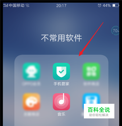 如下图所示,点击下图中红色箭头所指的手机管家,点击进入。