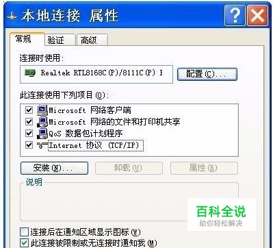 打开“网上邻居”——“属性”,跳转到“网络连接”界面,接着点“本地连接”——“属性”,出现如下对话框,点“安装”