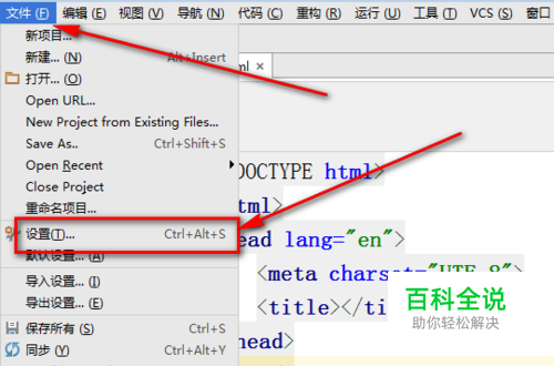 如图,点击“文件”——“设置”,或者直接Ctrl+Alt+S快捷键。