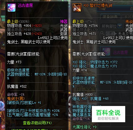 武器选择比较宽泛,最佳的选择可以在远古遗愿和丛云剑中选择一个,主要为了提高技能等级,能加buff技能攻击了更好,如图所示。