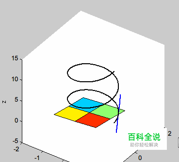 同时,还可以添加title(‘螺旋线’)命令来给曲线图一个标题。 以及给xlabel('x轴'),ylabel(‘y轴’),zlabel(‘z轴’)。