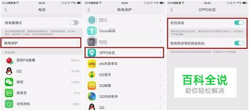 2、通过耗电保护--点击一个应用进入(以OPPO社区为例)--将后台冻结、异常提醒关闭,这样程序就不会在后台运行占用内存了。