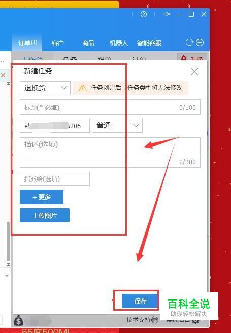 如下点击的是第一个小按钮,会打开一个新建任务的窗口,按照提示进行选择、输入、上传图片等,完成后再点击右下角的”保存”按钮进行保存。