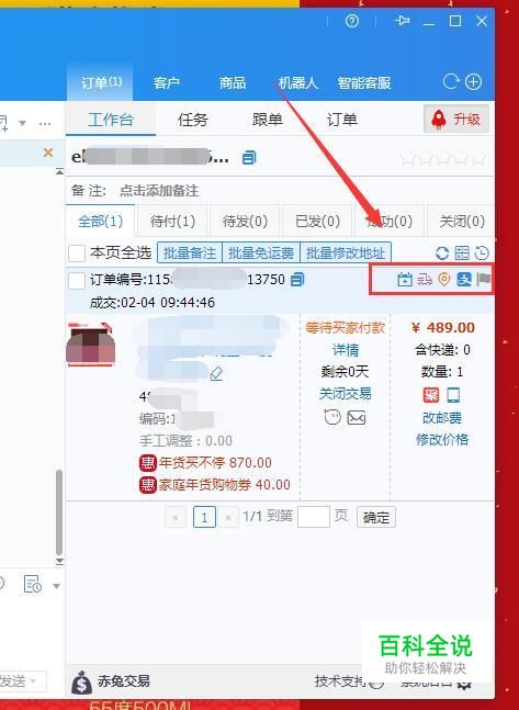 如下点击最后一个备注按钮,点击它可以直接把一些特殊信息备注到里面,这样更好的查看此订单的一些特殊情况等。