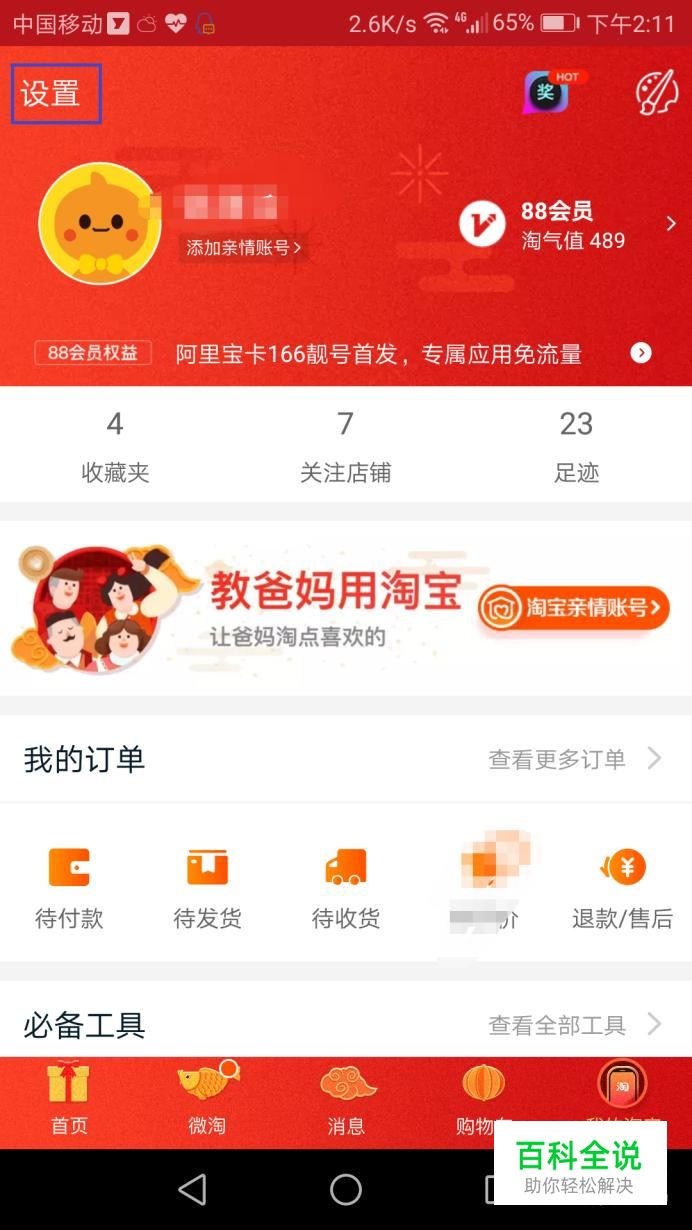 打开手机淘宝app,切换到"我的淘宝"页面。