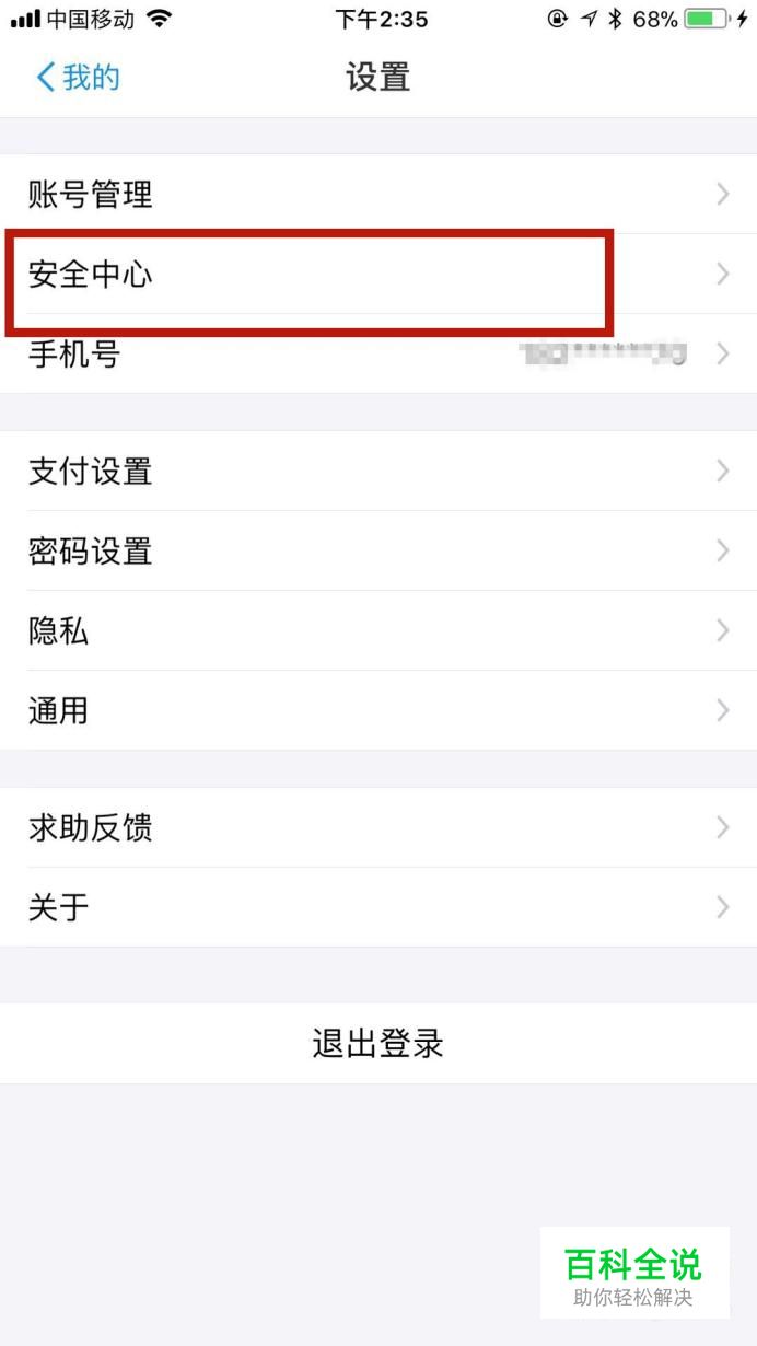 然后点击安全中心,如下图所示。