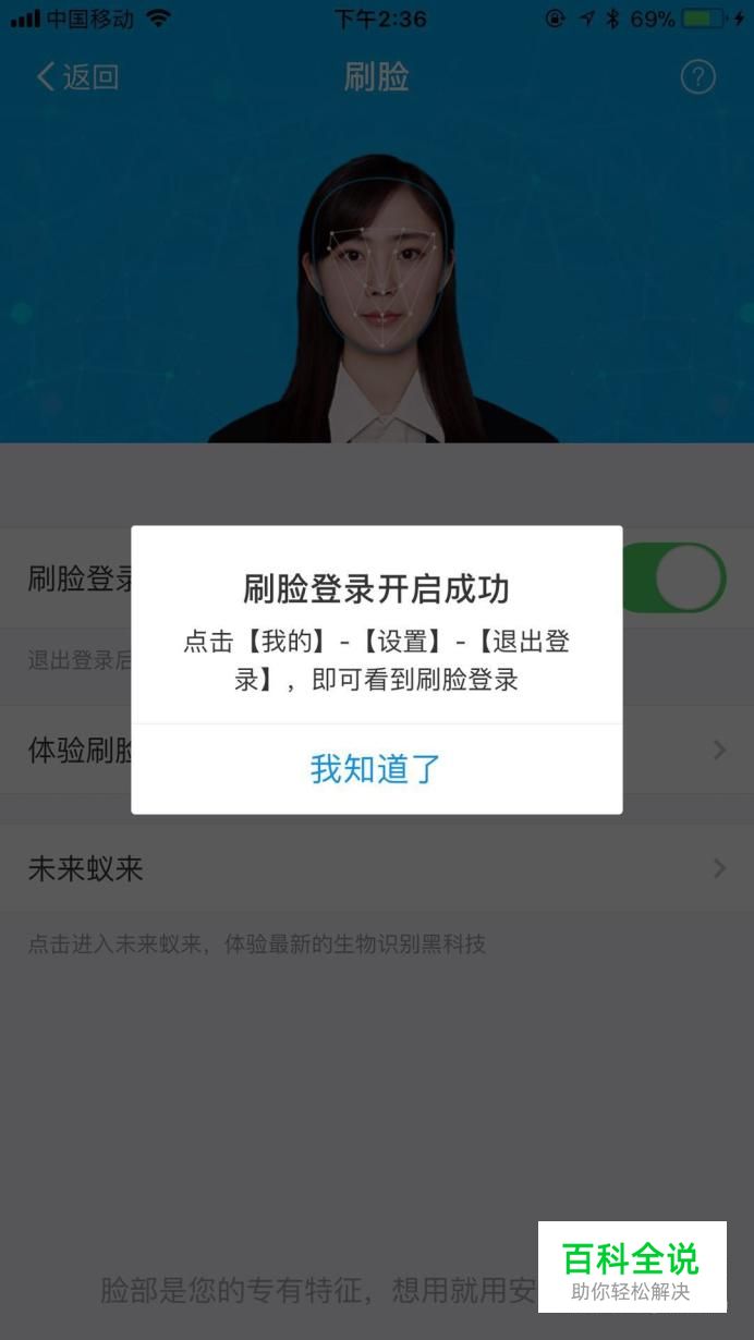 这样支付宝刷脸登录就开启成功了。