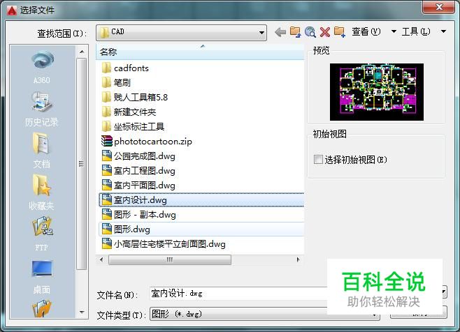在该界面内按下Ctrl+O键,弹出选择文件对话框,在该对话框内选择我们的图形文件,如图所示: