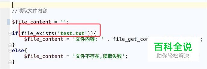 实际代码里,为了安全起见,我们需要先判断读取的文件是否存在,如果不存在,就没必要读取了。 判断文件是否存在可以用函数file_exists来实现,代码如图