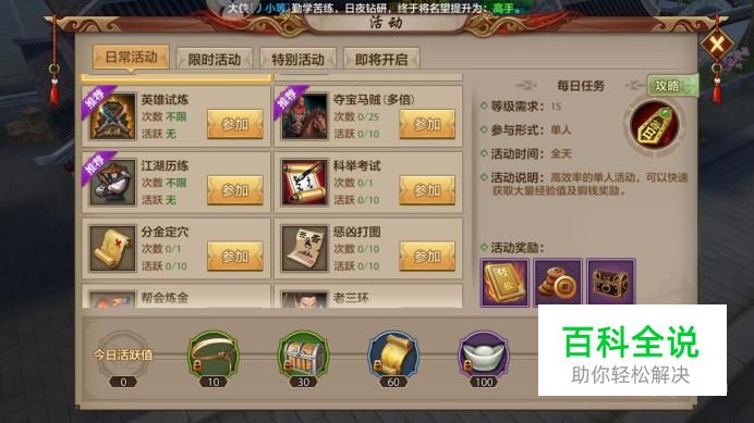 每日完成任务会有活跃奖励,满足要求后可在活动界面领取活跃宝箱。
